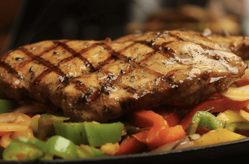살짝 두툼하게 썰어 구운 닭가슴살을 스테이크로 즐기세요. 감칠맛 나는 소스와 함께하면 훌륭한 단백질 식단이 됩니다.